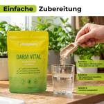 Bio Darm Vital lässt sich einfach in Wasser, Smoothies oder pflanzliche Drinks einrühren und flexibel in die tägliche Ernährung integrieren – ganz ohne Zucker oder künstliche Aromen.